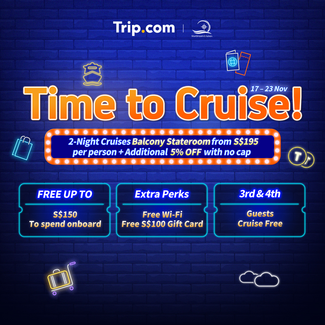 - Receive a S$100 Trip.com Gift Card when you book any StarDream Cruises with minimum spending of S$1000 spend for DBS/POSB cardholders. Limited to first 100 bookings between 17 to 23 Nov. Gift card will be sent to your registered email address 14 days after cruise fair ends.
