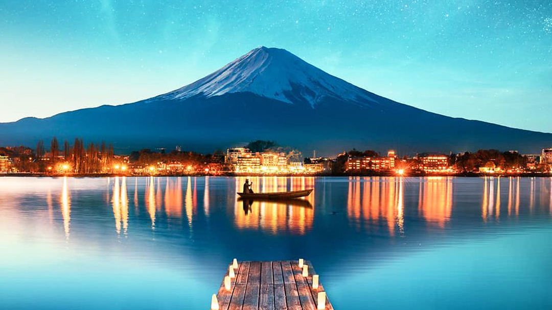 The sunset was just starting to paint the skyline in soft golds and purples, and Mt. Fuji appeared faintly on the horizon like a shy giant.