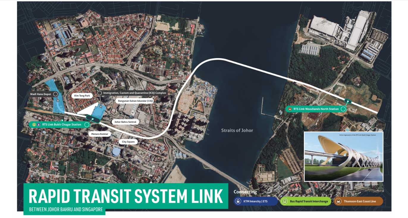 The Johor Bahru–Singapore Rapid Transit System (RTS) Link, scheduled to open by 2027, connects Woodlands North in Singapore to Bukit Chagar in Johor Bahru, Malaysia. This cross-border line offers a smoother, faster commute between both cities.