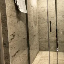 Расстроил номер в здании напротив основного. На первом этаже в комнате у входа было очень шумно, слышны все разговоры, звонки, хлопанье дверью, доставки, уборка и т.д. Если заселяться в это здание, то только на этажи выше первого. Ванная комната требует обновления, душевая кабина покрыта чёрной плесенью, не хватает тумбы у раковины и света у зеркала.