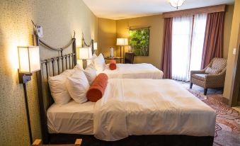 Lovely hotel with spacious rooms. Staff were very accommodating. Love the ambiance with the log cabin features. Close to eateries. Fair work to downtown shops but problem solved they gave us a 3 day bus pass.