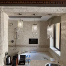 Hotel and room was charming, set in the quaint watertown. Service was top-notch, esp the personnel at the reception and concierge, who were not only courteous but helpful to explain the various programs and performances around the Watertown. There’re 2 meals provided w a choice of western or Chinese. Meal portions were huge. Location was literally next to the access to Simatai Great Wall and there were 2 hot spring locations to choose from next to the hotel. We thoroughly enjoyed our stay at Wangjing!
