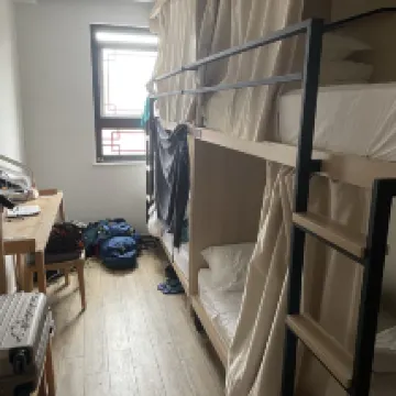 The hostel has a lot of good things — it’s beautifully decorated and has a really nice café downstairs with a rooftop area. But the prices there are crazy high, so I didn’t use it. Unfortunately, there’s no kitchen or even basic facilities to make your own coffee, so you either eat out or pay the café’s prices. The dorms are comfy, and the curtains on the bunks give great privacy. However, there's only one bathroom for all the dormitories and really needs better cleaning — it’s on the ground floor and shared by everyone, with only one toilet, one squat toilet, and a few showers with worn-out curtains. It could be much better.