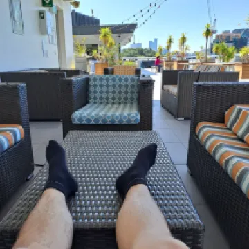 The hotel/hostel is clean, modern, and well-maintained. My room was comfortable, and even though the space is simple, it had everything I needed for a relaxing stay. The common areas were bright and social, ideal for meeting new people, and the rooftop was my favourite spot — stunning ocean views, perfect for morning coffee or sunset chill.