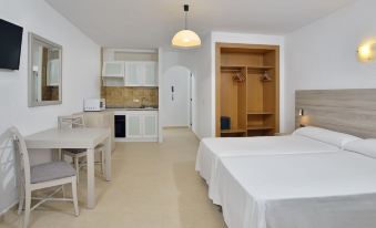 Stayed at this hotel August 2025 for a week with my mum and sister we went self catering. Room was a good size big double very comfy and a sofa bed which pulls another single bed out underneath, and kitchen. Rooms were cleaned every 2 days. Main entrance and breakfast restaurant was modern. There is a snack bar which makes fresh pizzas and other food and good prices on drinks at the pool bar. Sunbeds were taken early and busy time of year being August. Reception was very welcoming upon arrival. The beaches were very close by there were two beaches 7 minute walk either side. Around a 10 minute walk to the square with plenty of restaurants and a few bars. Highly recommend the star fish boat trip in Cala d’or the dolphins were amazing.