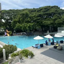 Hotel location is exceptional and close to the beach. Guests are overcrowded on weekend, insufficient common space including breakfast. The line for Moo-Ping is too long and table turnovrr takes so long as well. Good but nit worth for money that I have paid.