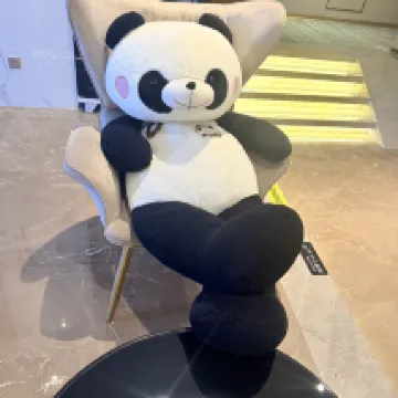 The hotel is in the lobby at the restaurant. There are panda figurines available for taking photos.1199