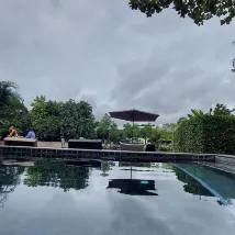 I booked this hotel for my quick business trip to Chiang mai. I did not expect much but turned out it was a less well-known lovely gem in Chiang Mai. The location was by the river, with the hotel ground, i could enjoy the river view anytime I wanted. The common area next to the pool was another area I found very pleasant to sit in. They provided coffee, tea, water and some snacks. The room had adequate lights ( I wish there were brighter) good size and nice with a little balcony. The breakfast was full of local food which I found very unique for this size of hotel. It was variety, many choices and delicious. The staff were friendly. Oh one thing to be concern if you were a light sleeper. There were some noises from the club nearby i guessed that I could here it in the room.