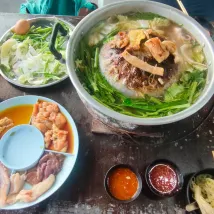By the way, there are many delicious places nearby, like the open-air charcoal-grilled pork stall, popular with locals. Delicious!