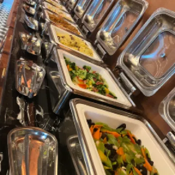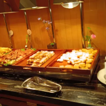 (d) The breakfast spread was extensive and well presented, offering plenty of variety to start the day right.