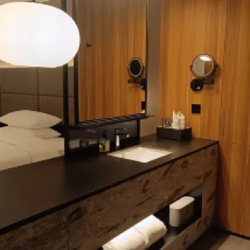 The moment I opened the door, soft light filled every corner, instantly creating an atmosphere of peaceful comfort. The custom mattress contoured perfectly to my body, the down duvet promised a night of blissful sleep, and even the air conditioning's gentle breeze felt just right – a truly thoughtful touch. Waking up to natural light, a simple press of the smart panel gracefully drew open the curtains, unveiling a private vista of either the city skyline or lush gardens. From the plush bedding to the serene soundproofing, from the thoughtful nightlights to the perfectly regulated shower temperature, every detail here whispers: tranquil rest should indeed be this simple, yet utterly perfect.