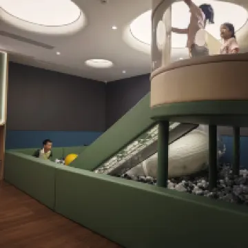 The hotel's location is ideal for those traveling by car. For independent travelers like us, it's easily accessible by taking a tourist shuttle bus from Wulong Bus Terminal. Our room was spacious, and the surroundings were very tranquil. Conveniently, there's a children's play area right next to the laundry facilities.