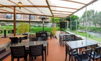 This modern boutique hotel features spacious super clean rooms with big windows that face the garden or the river. I had a double bed suite that come with a kitchenette and sitting room. Wifi was included along with a buffet breakfast that we enjoyed daily by the river. Staff were very friendly, accommodating and spoke English well. Showers were nice and warmed up quickly and all linens were soft and clean. Located bedside the Rio Tomebamba about a 10 -15 walk to main historical district. Cross the bridge by the river an walk up the steps at the Plaza El Otorongo.