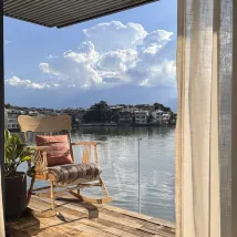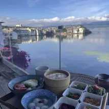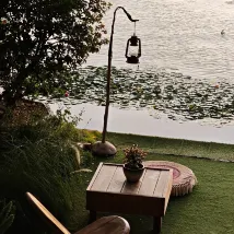 The hotel boasts a superb, genuinely waterfront location, set back from the ancient town's busy paths, ensuring an exceptionally quiet and peaceful stay. The common areas feature two tiered platforms, and I particularly loved the lower one. The downstairs lounge and the waterfront platform are incredibly photogenic, perfect for great photos. My only regret was that during our stay, some young children from other families were catching tiny fish and aquatic plants without supervision from their parents, making a lot of noise and leaving the common areas quite messy.