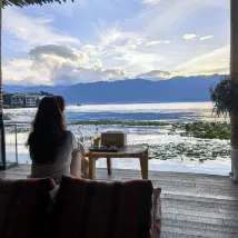 Almost forgot to write this review after getting swamped back home, but this hotel absolutely deserves a massive shout-out! The hotel is ideally located right by Erhai Lake; from the balcony, it truly feels like you're floating on the water. The location is absolutely stunning! Its design is modern, minimalist, yet elegantly stylish, creating a wonderfully comfortable and truly therapeutic ambiance. The service here is absolutely exceptional and incredibly thoughtful! Even before check-in, they proactively contacted us to arrange luggage pick-up, which is miles ahead of a typical family guesthouse. Our personal butler even drove an electric cart to pick up our luggage and delivered it straight to our room! The hotel also provides a delicious afternoon tea and a nourishing bedtime soup. Breakfast is lavish and features authentic Chinese and Western dishes – simply superb! They even offer a complimentary 30-minute travel photoshoot; the photographer was incredibly professional and patient, capturing stunning pictures of us. My only regret is that we only got to stay here for the last two days of our trip. The next time I come to Dali, I'll definitely book this hotel again for a full week of pure relaxation and rejuvenation!
