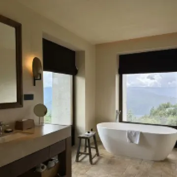 Facilities: The room layout was beautiful, well-equipped with an oxygen concentrator, air conditioning, and floor heating. The bedding was also very comfortable. The mini-bar was extensive, and the toiletries were incredibly high-end. Hygiene: Excellent, very clean and tidy. Dining: This was the most memorable part of our stay. I think they used to collaborate with Banshanyao (a restaurant/hotel), but they've completely surpassed it. The dishes were even more amazing than what I've had in Shanghai. I'll definitely come back again if I have the chance!