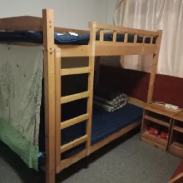 Stayed in the men’s dorm room, just for one night, and really wouldn’t recommend it.