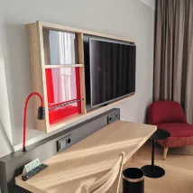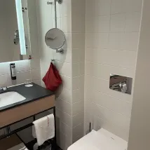 Overall, I was quite satisfied with the accommodation. The location is super convenient; just exit the train station's side door, cross the street diagonally, and you're there. Check-in was smooth, though a city tax is required. The room was quite spacious and quiet at night. Breakfast was continental style, but the selection was a bit limited.