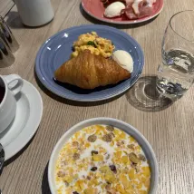 Friendly, professional, knowledgeable reception with excellent service. Comfortable, clean room and overall hotel. Breakfast was overall good and plentiful but no bacon/sausage; just bacon bits in with what I suspect are powered eggs although eggs can be made to order...just ask.