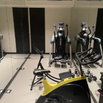 The location is decent, right by the subway exit, which is super convenient. The all-black decor, especially in the bathroom, makes it look a bit less clean, but I understand since my own bathroom is similar. The shower pressure was really nice. The housekeeper was responsive whenever we needed something. My main gripe with the bathroom was the lack of hooks for towels, which made it a bit inconvenient. I loved the smart display on the TV for laundry – that was a great feature! The room wasn't huge, but the mattress and pillows were comfortable enough. The gym, however, was pretty disappointing; it felt like an afterthought. Breakfast was also very, very average.