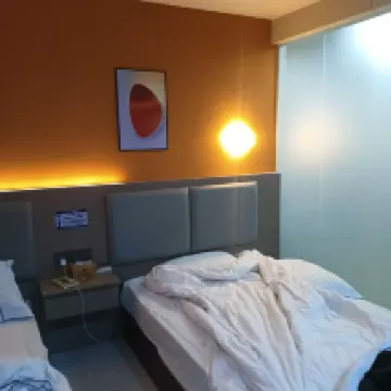 It's on the second floor. The first floor is just a passage. Even the check-in desk is just a decoration. You have to walk to the second floor. The bed is big but dim. The light is very average. They don't even give water. You have to yell at the front desk for it. The sanitation is not timely. They said that if you don't let me clean, I won't enter your room. But it's close to several delicious places in Huadu.