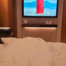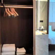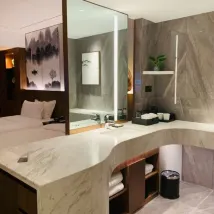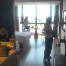 **Room:** Upon entering the room, you're greeted with a sophisticated tech experience, as the lights and curtains open automatically. The design is also very stylish.