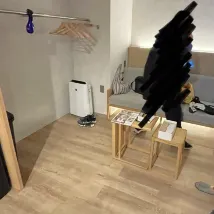 The room is very spacious and can be fully opened for two people to carry their luggage. The TV can also be connected to the phone to play videos. In addition, the kitchenette in the room is fully equipped with a microwave and an induction cooker. There is no need to worry about being hungry at night and having nothing to eat.