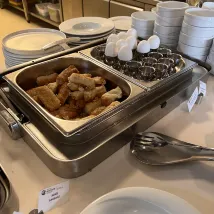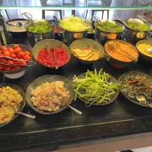 The breakfast is sufficient, every day a different soup, from different vegetables, fruit, Kelloggs, scrambled eggs etc. enough choice. Different types of tea, coffee, water etc. The service staff was very friendly.