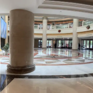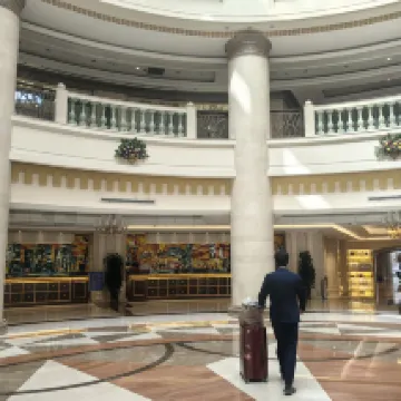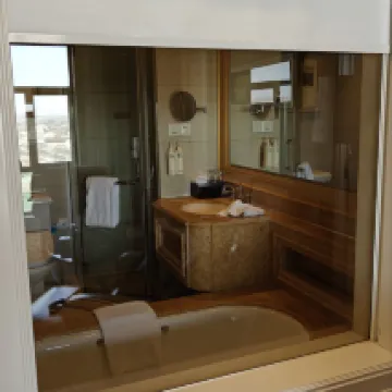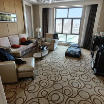 The room is big enough, the living room has plenty of room for an extra bed, and the view from the upper floors is good. The elevators are well arranged, and there is no long waiting time on the upper floors. The overall service is good, and robots deliver takeaways when ordered. The Chinese restaurant is OK, especially the green leafy vegetables are better than those fried in other restaurants. When checking out, I asked for a half-hour extension, which was readily agreed.