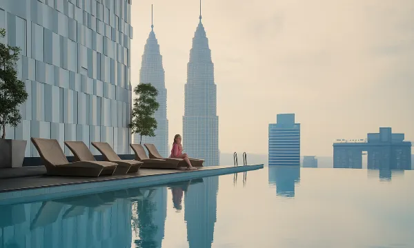 The swimming pool on the 51st floor has stunning city views and is perfect for photos. However, the pool itself is not very large, there are very few loungers, and the relaxation area is small, not very cozy, and almost always occupied.