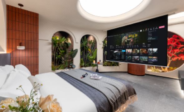 * The hotel design is very thoughtful! The public areas feature light gray and natural wood tones, complemented by tie-dye decorations and a green wall. Even the elevator lobby has art installations, making it easy to snap great photos.