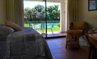 Bright and spacious, rooms at Sendero del Sol have large windows overlooking the garden.
