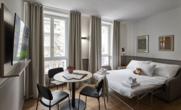 We (me, my husband, and our 21 year old daughter) stayed at Base Lausanne for 3 nights in early July, left a lot of our luggage at the Base for a week for a one-week hike in the Swiss Alps, and returned to the Base for 2-nights. Base Lausanne is by far our favorite city-stay apartment. I'm so glad that our original airbnb reservation was canceled by the host so we found Base Lausanne instead. We had a one-bedroom with a sleeper sofa in the living room. While the Base does not provide some of the amenities a regular hotel might have (eg no a/c, so it can get a bit warm on hot days for Americans accustomed to a/c in the summer), it suited our purposes beautifully. It has a wonderfully efficient kitchen (modern and top of the line appliances). There are also excellent washer and dryer in the lower floor along with free detergent. This was super convenient as we could wash our dirty clothes after our hiking trip before our long journey home. I like most the abundance of cabinet and closet storage spaces in the apartment to put away our belongings, so the room looked orderly throughout the day. The staff, Cedric in particular, are so welcoming, helpful and thoughtful. We left our luggage in the room before we left, and our luggage was waiting for us in the room a week later upon our return. The location is super convenient. We love the food shops in the immediate neighborhood: Bread Store (award winning boulangerie/patisserie 5 minute walk away), Loom (gelateria next door to the hotel), Coop (relatively large supermarket, 4 minute walk), Planet Bowl (healthy and good value poke bowl, directly opposite). Thank you the Base Lausanne team for making us feel so welcome and comfortable. We can't wait to go back to Base Lausanne again!