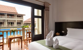 In the millennium old capital of Luang Prabang, there is a unique and modern old-fashioned architectural style hotel - the Lan Xiang Boutique Hotel. The hotel has a superior geographical location and convenient transportation; The hotel covers an area of nearly 7 acres and has spacious and comfortable boutique rooms, each room with an independent and spacious balcony; 180 square meter super large swimming pool, allowing you to enjoy sports fun to the fullest; Two parking lots in front and behind, capable of parking at least 30 beloved cars; The hotel has a wide view, offering a panoramic view of Phu Shuang mountain which is the highest point in Luang Prabang, awakening a beautiful day from nature. Lan Xiang Boutique Hotel is elegant and peaceful, working together with a high-quality service team to ensure that you enjoy delicate care during your stay. Lan Xiang Boutique Hotel in Luang Prabang welcomes you!