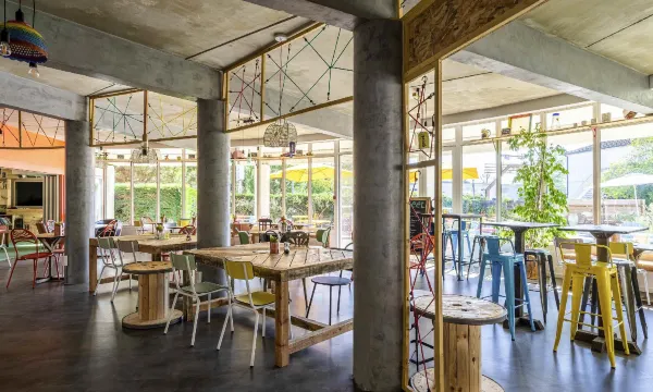 Welcome to greet! The fully refurbished greet Bordeaux Aéroport hotel is 2 minutes from Bordeaux Mérignac airport, and is a welcome stopover in a cheery and eco-friendly environment. For leisure or business, relax in air-conditioned rooms with upcycled antique features. Enjoy the friendly atmosphere at the bar and restaurant, and have fun with a game of petanque or table football.