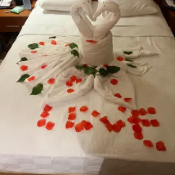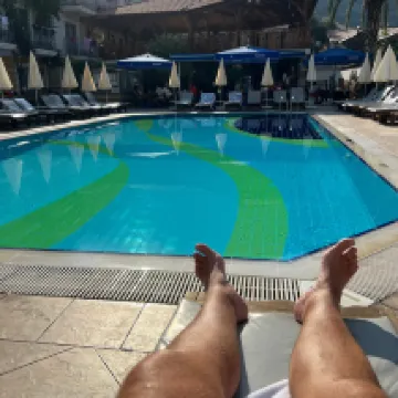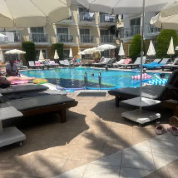 Sitting round the pool while writing this ( got 2 days left of holiday). We have been here for a weeks holiday ( wish it was longer) & have to said we HAVE LOVED EVERY MINUTE. During our stay we celebrated our 25th wedding anniversary & Mehmet has made it extra special ( big shout out to the cleaners who decorated our room ) The hotel , pool area & roms are spotless clean & Reggie plus bar staff are fantastic & always on hand to serve you that ice cold drink . When we had food in the hotel we found it lovely & plentiful. Location is fantastic, right in the middle of everything but just away from the noise. Wife looking up dates to return next year whilst I'm writing this .THANK YOU for a brilliant holiday & see you all next year . Glen & Tracey