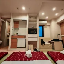 Impressed with the communication, attentive from the beginning of the booking until the day we arrived at the hotel. We booked 2 rooms but received passwords for only 1 room. But a short while later, the hotel sent the password for the 2nd room. We talked via Line, very convenient. This trip we went to the Expo 2025. In the room, there was a kitchen with simple cooking equipment. There was a coin-operated washing machine, free detergent. The only thing that was deducted was the dust. We were able to handle it ourselves. Traveling to the train station is nearby. There are convenience stores and other restaurants that are far away. You can walk there.