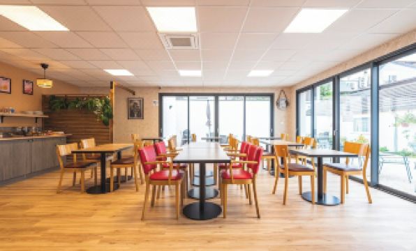 We found that hotel by looking at “hotel with car park” in Reims and booked. I have to say that as soon as you enter rue de Magneux, guided by the satnav, seeing cars parked both sides, with a sole lane in the middle, I thought “Where the hell are we headed?” The hotel is placed on both side of the street and is composed by various composite blocks purchased one after the other, it has evolved like this and will probably carry on to do so. A magnetic card/key is given to you and it open a WIDE garage that can fit 16 cars and a few motorcycles. That might have been a workshop or a farm building of some sort and there is a LOT OF ROOM in it. As much as the bedrooms in block C actually, and I have to say that we’ve got the widest bedroom we ever had, through our travelling years. We had a glance at the other bedrooms of block C with the maid in the morning and they are spacious but not only MONEY has been spent on very high quality items: beddings, furniture, massive TV (we didn’t turned it on) air con, superb bathrooms, electric blinds, nice curtains… as a cherry on the cake there is nice personnel, friendly boss, standard and complete buffet breakfast. And all that for less than the chains in centre town!!!!