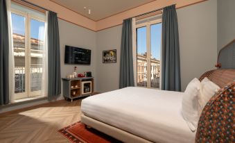 Проживала в отеле в августе вдвоем с дочкой, месторасположение самый центр, шумно, номер выходил на проходную улицу. Балкон отличный, чистый номер, свежий ремонт, стильный отель, кровать и подушки хорошие, отличный завтрак. В целом хорошая 4*.