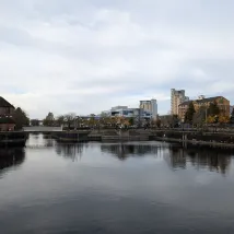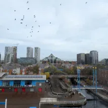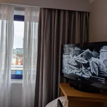 The hotel location is quiet and a couple of hundred yards from the tram. It is the other side of the quay from Media City that offers a large variety of restaurants.