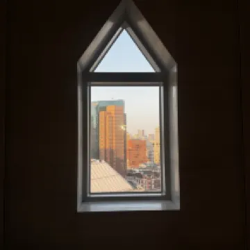 The minimalist design, a renovation of an old building, has a great texture. From my room on the 25th floor, I had a beautiful view of the charming old architecture outside.