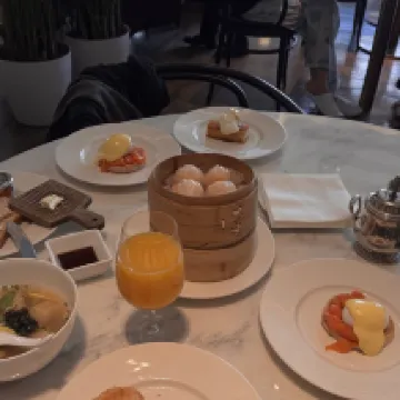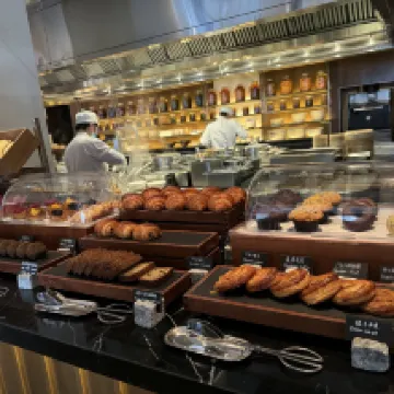Located on the ground floor, the restaurant offers a semi-buffet, semi-à la carte experience. The made-to-order section features a rich and refined Western selection, while the Chinese options boast distinct Shanghai local flavors, including potstickers, soup dumplings, fresh pork glutinous rice balls (cimotuan), fried dough sticks, soy milk, and beef vermicelli soup. The ambiance is elegant, and the glass windows overlook Nanjing Road, giving a sense of being a hidden gem amidst the bustling city.