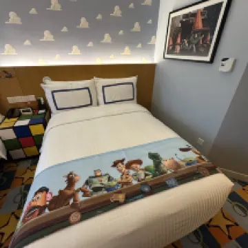 We had a fantastic family stay at the Toy Story Hotel! From the moment you step in, the theming is incredible—it really feels like you’ve shrunk down to the size of a toy. As you can see from my photos, the room details are amazing (my daughter loved the Buzz Lightyear wall art!), and seeing characters like Woody and Bo Peep walking around the hotel made it extra special.