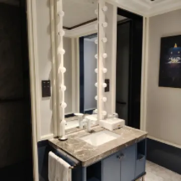 The room was spacious with comfortable lighting. It came with a bathtub, and they even provided a disposable tub liner, which was a thoughtful touch. The toiletries were in convenient travel-sized bottles, making me feel at ease. The sofa was deep and very comfortable to sit on. Plus, it's right on Zhujiang Road, which is very convenient.