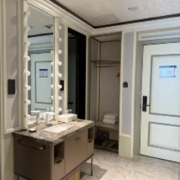 The room environment was great and very clean. The only minor issue was that the shower door in our room didn't close tightly, causing water to leak out during showers, and there was a slight leak under the sink. After informing the front desk, they quickly came to fix it. The response and resolution were very prompt, so the service was quite good. The hotel's location is also excellent; just across the street, there are many dining options. Plus, the hotel has a parking lot, offering free parking for those traveling by car.