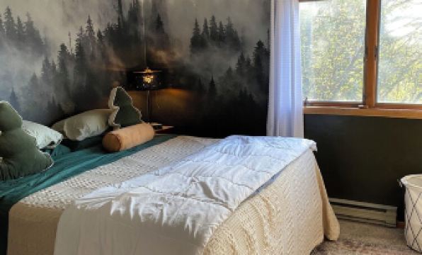 Feel the stress melt away at recently remodeled Lakeside Lair on Lake Superior. A lair is a secluded or hidden place, a hideaway, and that’s what this efficient one bedroom end-unit condo offers. With no upper or lower neighbors to disturb your peace and quiet it’s ideal for a single or couple seeking to be surrounded by nature. A short level walkway from the parking area just outside the condo provides easy access with no stairs. Enjoy the coastal Superior view from the large lakeside windows and deck looking up the North Shore out over Flood Bay. Relax in the fresh air on the very private deck which is perched high overlooking the waves and rocky shore below. Directly in front of the condo the shoreline is accessible by a railed stairway to the firepit located on the water’s edge.