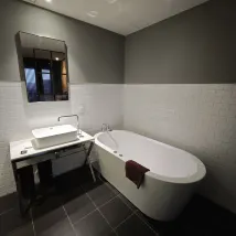 Room was spacious. Though the lights in the shower auto switched off after 10-15 minutes. It happened twice, when I was soaking in the tub and when I was doing my make-up.