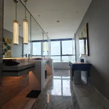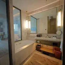 The hotel is only a dozen kilometers away from Suzhou South Railway Station, and it is not easy to get stuck in traffic. It is not far from Tongli Ancient Town, Xitang Ancient Town, and Jinxi Ancient Town. The room design is relatively reasonable, and the bathroom and washroom are in two spaces so that they can be undisturbed. The bathroom also has a separate washbasin that is inductive. The glass next to the bathtub can be misted or transparent. The design is more humane.