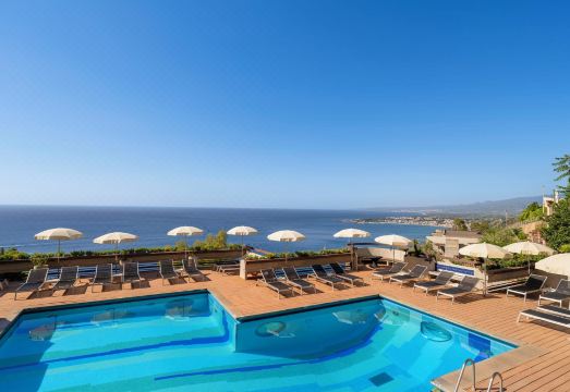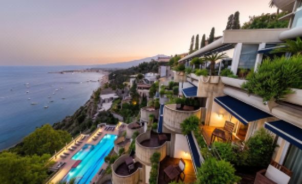 Amazing hotel with the great sea view. The hotel is just next to the center, and located on a cliff of the rock city of Taormina. Will definitely come back next time.