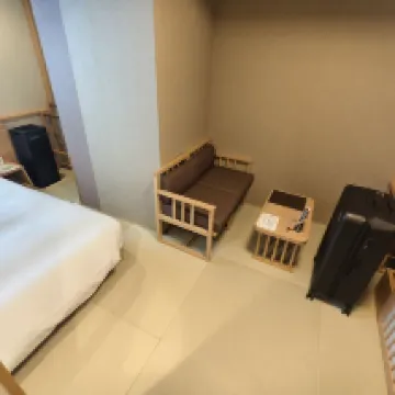 This hotel is right next to Senso-ji Temple, just a 5-minute walk away. As soon as you step inside, you're enveloped in a strong Japanese ambiance. First, you roll your luggage wheels clean on a special mat, then take off your shoes and put them in a designated, lockable cabinet. The front desk staff member was very nice, explaining all the hotel facilities and important notes. The front desk also offers 24-hour free coffee. The room itself also had Japanese-style decor. After changing into our yukatas, we couldn't wait to go for a hot spring bath. There's natural hot spring water at a comfortable 42 degrees. From 9:30 PM to 11:00 PM, they even serve complimentary soba noodles. After a relaxing hot spring, a free ice cream is the perfect treat—absolutely delicious! We went back to our room to sleep after our soak. What a perfect day!